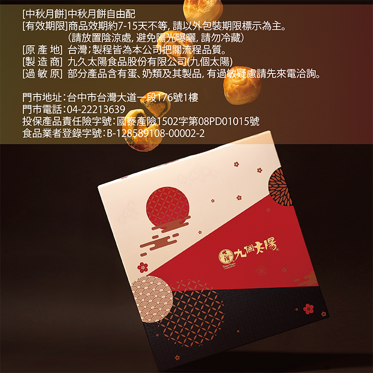 ※過敏原資訊:本產品含有蛋、奶類製品之過敏原,不適合其過敏體質者食用。